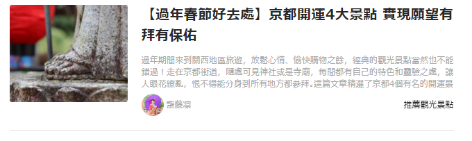 台湾向けインバウンド動画コンテンツを提供しタイアップ記事をいくつかご掲載頂いています。